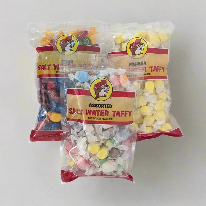 Bring a taste of the Texas road trip home with Buc-ee's Saltwater Taffy! This colorful mix of soft, chewy taffy features a delicious variety of classic and unique flavors that melt in your mouth and keep you coming back for more. Whether you're craving fruity, creamy, or tangy notes, every piece offers a burst of sweetness and nostalgia.